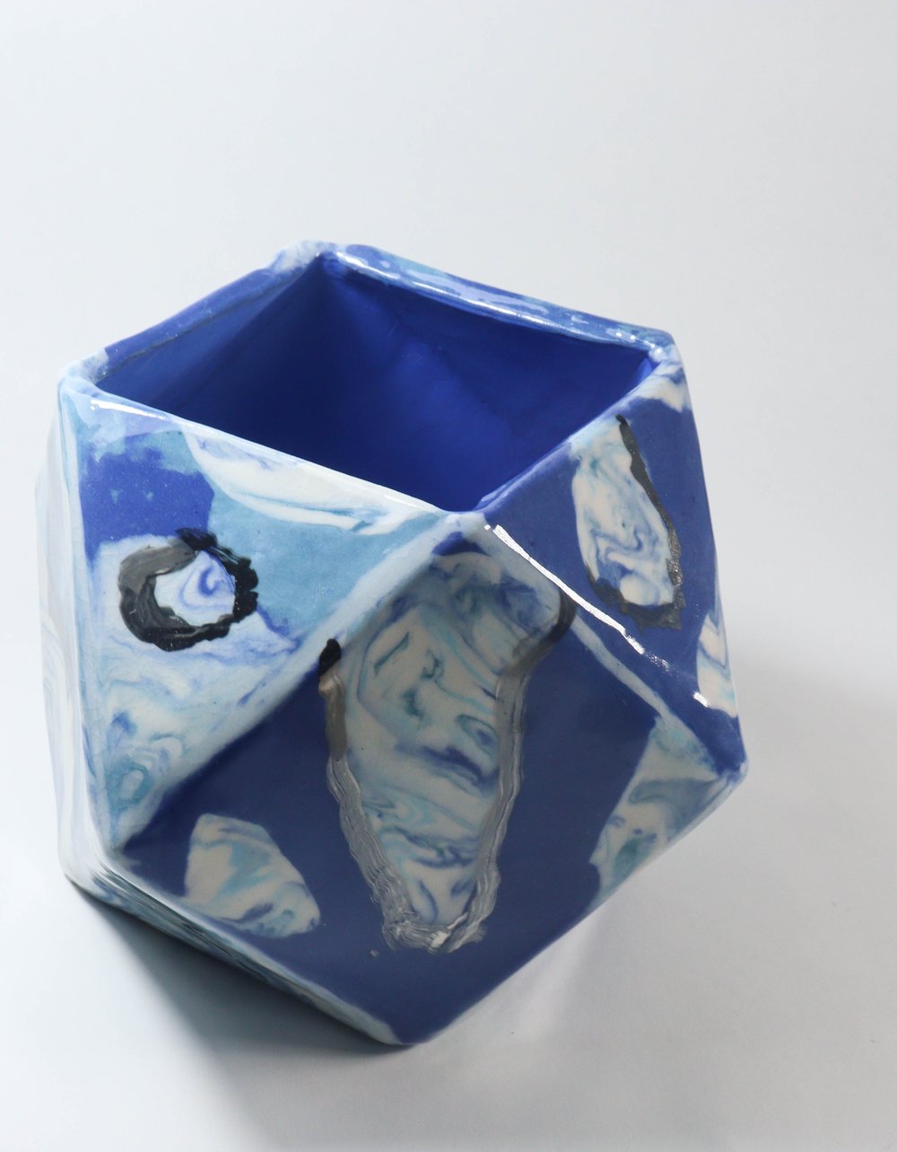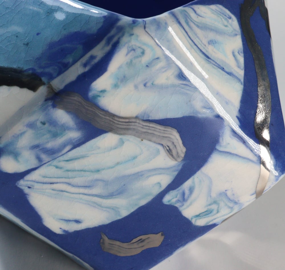 Blue and White Gold Ceramic Geometric Planter